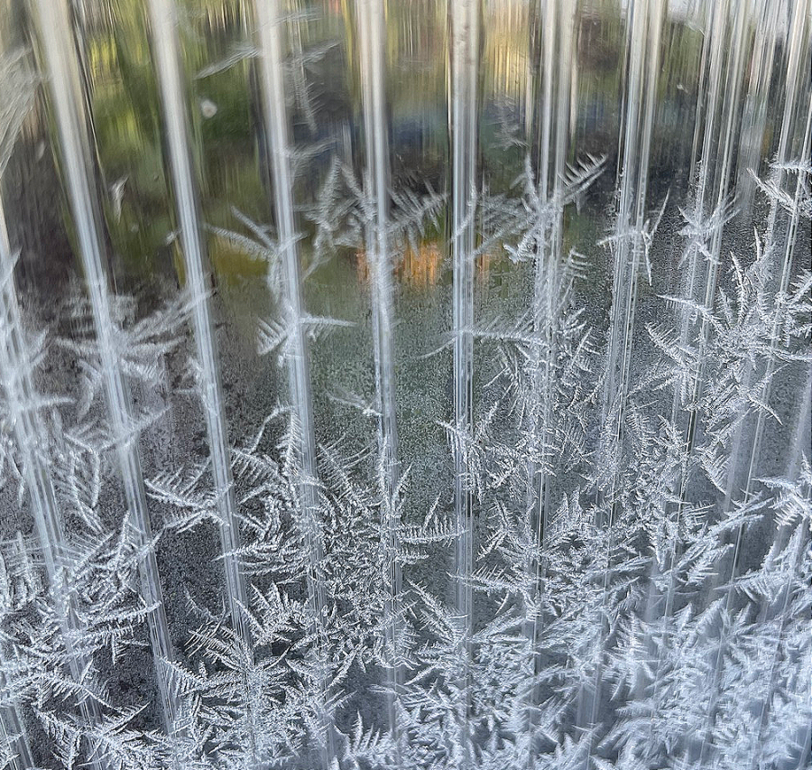 .. in meinen Gewächshäuschen „blühen“ derzeit tatsächlich nur die Eisblumen an den Fenstern und Wänden.
